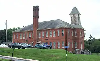 Built in 1887, this historic structure is a large, two-story, Victorian, eclectic brick building that measures one hundred feet by fifty feet, has a hip roof, and has Italianate and Queen Anne design elements. The building features a three-story bell tower with a steeply pitched hipped roof.[2] The building has been converted to apartments.