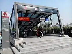 There are four entrances in service. Exits D and E were labelled as C and D before line 8 opened.[5]