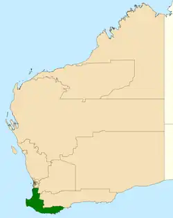 6. ^ Western Australian Electoral Commission (WAEC) (27 November 2015). "South West Region". Archived from the original on 20 April 2017. Retrieved 20 April 2017.