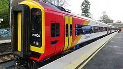 All 24 Class 456 two-car EMUs were transferred from Southern to SWT, with the first units entering SWT service on 23 March 2014.[37] These early 1990s-built units are compatible with the existing Class 455 fleet and are coupled with these to form ten-car trains, increasing capacity on some local services in and out of Waterloo.[38]