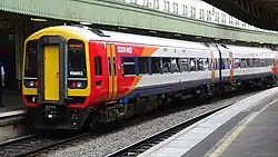 From late 2006 to mid-2007, the Class 170 units were gradually transferred to First TransPennine Express in exchange for a larger number of Class 158 units, to expand and standardise the fleet. One unit, 170392, originally built to Southern specifications but taken over by SWT soon after its construction, went to Southern and was converted to a Class 171.[50][51]