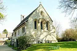 The Grade II* listed Tithe Barn[11] and 12th-century Church of the Ascension[12] are also points of interest. The church was abandoned to storing crops and making cider at some stage after 1646. In 1862 The Earl of Ellenborough restored the church in memory of his first wife, Lady Octavia Stewart, who had died of tuberculosis after five years of marriage. Ownership of the church transferred to the Diocese of Gloucester in 1957.