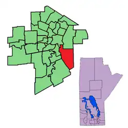 Southdale is a provincial electoral division in the Canadian province of Manitoba. It was created in the provincial redistribution 1999, mostly out of Niakwa and part of St. Vital. The riding is located in the southeastern section of the City of Winnipeg.