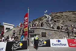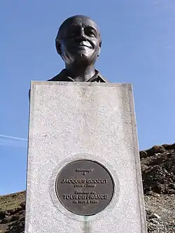 The Souvenir Jacques Goddet is an award and cash prize in the Tour de France bicycle race that began in 2001. The Souvenir is named in honour of the historically second Tour de France director and French sports journalist Jacques Goddet. It is awarded to the first rider to reach the summit of the 2,115 m (6,939 ft)-high Col du Tourmalet mountain pass in the Pyrenees, apart from 2002 Tour when the Col d'Aubisque was used and 2007 Tour where it was awarded in Port de Pailhères. A monument to Goddet was erected at the summit soon after his death in 2000.[1] Since 2003, the cash prize is €5,000. In 2019, Thibaut Pinot became the first repeat winner of the prize.
