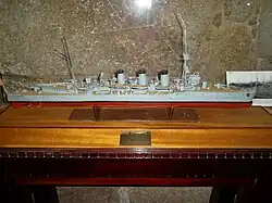 From 5 February to 10 June 1931, Blas de Lezo was at the Arsenal de La Carraca in San Fernando for repairs and the installation of searchlights, an electric log, an acoustic echo sounder, and a Hazemeyer firing station.[1] During the first week of August 1931, Blas de Lezo, Almirante Cervera, Libertad (ex-Principe Alfonso), Méndez Núñez, Miguel de Cervantes, República (ex-Reina Victoria Eugenia), eight destroyers, and 10 submarines gathered at Bilbao.[1] In mid-October 1931, Blas de Lezo was back in Cádiz, and she conducted tests in the Bay of Cádiz on 30 October.[1] She left Cádiz on 27 November 1931 to proceed to coast of Galicia.[1] On 29 December 1931, she left Vigo accompanied by two submarines from Ferrol for gunnery practice in the open ocean.[1]