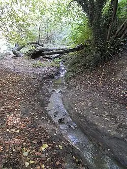 From a geological perspective, the area along the stream is on the sandstone of the Ashdown Beds and this is surrounded by clays and mudstones, also of the Ashdown series all laid down in the Cretaceous Period. Several valleys run from The Ridge to the sea from the Marline Wood area in the west to the Country Park in the east.