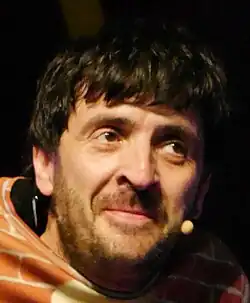 Jones plays Shakespearean actor William Kempe in the sitcom Upstart Crow, which was broadcast on BBC Two beginning in May 2016. Jones plays the character as a parody of Ricky Gervais using his manner and speech patterns.[11] He was asked to play the character this way to draw a comparison between Kempe, a popular comic actor of the 16th century, and Gervais in the present day;[12] according to the show's producer Gareth Edwards, "what we tried to show was that every era has its own maverick comedy guy who's slightly ahead of his time and is following the beat of a slightly different drum".[11]