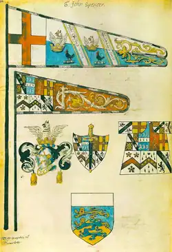 The original coat of arms of the familyThe funeral honours of John Spencer (died 1599), showing both the "sea-mew" arms and the Despencer arms later used by the family