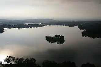 Spinnaker Island and Springbank Island are both located in the West Basin of the lake.[1] The West Basin extends from the Commonwealth Avenue Bridge to Black Mountain Peninsula.