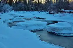 The Spirit River is a tributary of the Wisconsin River with headwaters in Price County and a confluence with the Wisconsin in Lincoln County just downstream from Lake Mohawksin. The source is Spirit Lake near Timms Hill. The Ojibwe name for the river was Manatokikewe Sebe (Stooping Spirit River). [1] The river flows nearly west to east. About one mile from its mouth, the Wisconsin Valley Improvement Company maintains a dam which forms the Spirit River Flowage.