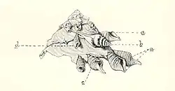 | Drawing of Spirotropis carinata on a specimen of Xenophora pallidula | |
