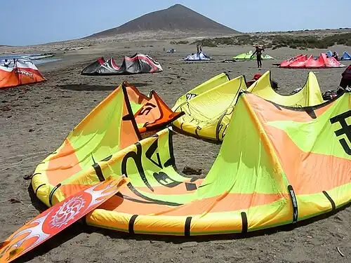 In another sense, sports such as skydiving and paragliding play an important role.[8] The Festival Internacional de Parapente (International Festival of Paragliding) (FLYPA) is held in Los Realejos. There are more than 40 places on the island which are used for these aerial sports.