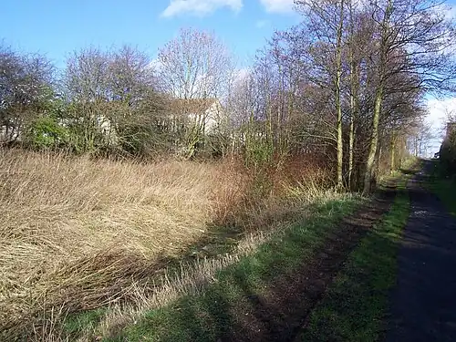 About 300 yards from the station was another siding known locally as 'The Hurries', serving Springside Number 10 colliery. A horse-operated line, 'The Bogie Line', ran up from the pit, conveying the hutches to be unloaded into trucks waiting at the siding.[7]