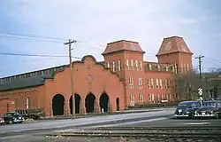 Four chimneys on the south facade of the office building were removed in 1915.[4][3] A tower on the southwest corner of the trainshed was removed in 1923.[3] Passenger service on the Richmond Branch ended on November 11, 1938.[2] The CN demolished the station and trainshed in 1963, and passenger service ended with the discontinuance of the Montrealer on September 6, 1966.[4][2][5] A local preservation group was formed in 1970; with the office building and remaining yard facilities placed on the National Register of Historic Places on January 21, 1974, as the Central Vermont Railroad Headquarters.[3]
