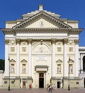 St. Anne's Church (Polish: Kościół św. Anny) is a Roman Catholic church in the historic center of Warsaw, Poland, adjacent to the Castle Square, at Krakowskie Przedmieście 68. It is one of Poland's most notable churches with a Neoclassical facade. The church ranks among Warsaw's oldest buildings. Over time, it has seen many reconstructions, resulting in its present-day appearance, unchanged since 1788. Currently it is the main church parish of the academic community in Warsaw.