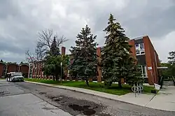 ![]() St. Basil-the-Great College School in March 2024. It was built in the former Southam newspaper plant in 1999. | |