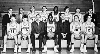 The 2017-18 Bonnies tied the school's season record at 25 wins, a record previously set by the 1969-1970 Final Four team.[17] The 25-win season resulted in an at-large bid in the NCAA tournament as an 11-seed, where the Bonnies went on to beat the UCLA Bruins 65-58 for their first NCAA tournament win since 1970.[18] The 2017-2018 season marked the Bonnies' seventh NCAA tournament appearance in program history and the second under head coach Mark Schmidt.[17] The Bonnies later lost to the Florida Gators 62-77 in the 1st round of the NCAA tournament.[19]