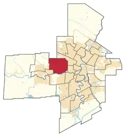St. James is bordered on the east by Wellington, Minto and Wolseley, to the south by Tuxedo, to the north by Wellington and Lakeside, and to the west by Assiniboia and Kirkfield Park.