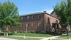 In 1853, the church purchased a frame building adjacent to its property and quickly opened a parish elementary school inside. After sixteen years, a larger structure was desired, and a larger brick building was erected immediately to the east of the church at a cost of $4,000. Continued growth necessitated its replacement by a newer building in 1899; this structure is still standing.[6] With features such as towers and turrets, St. Joseph's School is one of the most architecturally-prominent Catholic schools in the region, along with schools in Minster, St. Henry, and Chickasaw.[2]: 4
