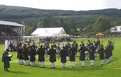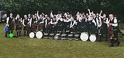 The band won prizes in Ireland, but not in Scotland in 2002, and in 2004 placed in all five Major championships.[1] In 2008, the band won the Scottish and British Championships, and was runner-up in the European and Cowal Championships and placed 5th overall at the World Championships, winning the Champion of Champions in Grade 1.[1] In 2010, the band's centenary year, the band won the World, European and All-Ireland Championships.[1] Terry's son Alen Tully took over as pipe major for the 2014 season.[5][6][7]