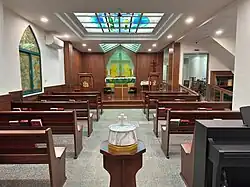 In February 1999, when Rev. Chen Hong-Hsing (陳宏行) came to the church for the second time as pastor, he moved the chapel from the third floor to the first floor, and made the entrance glass-walled so that people could easily enter from the street. The altar was changed to colored glass to create a cross of resurrection, and the ceiling was also made of colored glass to create a modern and bright interior. Also, the vestry was changed to become a multimedia control room, and the projection screen could be lowered electrically.