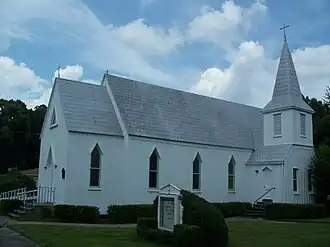 St. Mark's Episcopal Church, is an historic Carpenter Gothic Episcopal church located today at 212 North Church Street in Starke, Bradford County, Florida. Designed by Fernandina architect Robert S. Schuyler, it was built as All Saints Episcopal Church in 1880 some 20 miles to the south in Fairbanks in Alachua County on land donated by Fernandina attorney, George Fairbanks, who founded Fairbanks. After disastrous freezes in the 1890s destroyed the Fairbanks citrus groves, membership in All Saints declined and the church was closed. In 1900 it was moved to its present location and renamed St. Marks. All that remains of All Saints in Fairbanks today is its overgrown cemetery.[1] [2][3]