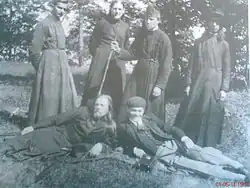In 1911, in addition to the existing monastery school, the monks opened a two-class school in the village of Otoki, where 62 children studied, and a lower one-class school in Jabłeczna, intended for 60 people.[93] In the same year, a vocational school was established, attended by about 50 people. The institution's program included practical courses in agriculture, gardening, veterinary medicine, forestry, dairy farming, and beekeeping.[94] The establishment of these schools was associated with the promotion of Orthodoxy through the monks' social activities.[69] In 1914, the last year of the monastery's operation in the established form after 1875, 431 people were studying in all the schools run by them.[94] Additionally, in 1912, 1,760 people benefited from free medicines issued at the monastery pharmacy, and in 1913, 4,500 free meals were distributed.[95] The monastic way of life was based on the rule of St. Basil the Great with elements of specific traditions drawn from the Optina Monastery, the Sarov Monastery, and the monasteries of Kyiv.[96] The period of the monastery's final years of operation in Tsarist Russia, as Father Żeleźniakowicz called it, was its golden age.[89] The monastery once again became an important pilgrimage center.[97]