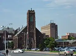 St. Anthony's was the founded as the national parish for the Italian community of Hartford in the 1890s. When the founding pastor, Angelo Chicaglione, returned to Italy in February 1895, he was succeeded by his assistant, Edward Flannery.[6] The parish moved to Market Street in 1921, however the new building was seriously damaged by flooding in 1936 and 1938. In the 1950s, redevelopment eliminated much of the Italian neighborhood served by St. Anthony. After Saint Anthony parish was merged with Saint Patrick parish in 1958, the Market Street church building was sold to the city and demolished for redevelopment.[3]