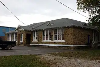 The St. Paul School Building is a historic school building at 200 West 4th Street in St. Paul, Arkansas. It is a single-story masonry structure, built out of local sandstone. It has gable-on-hip roof, with a shed-roof addition to the rear. Two small triangular louvered vent dormers flank the projecting entry porch. The school was built in 1940 with funding from the Works Progress Administration, and serves as a community meeting place as well as school.[2]