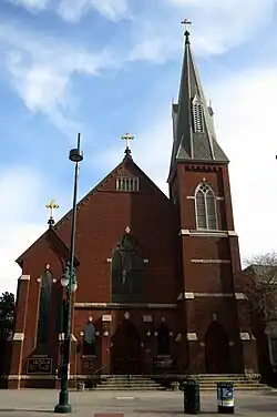St. Peter’s Catholic Church is a Catholic parish church at 507 South Tryon Street in Charlotte, North Carolina. Established in 1851, it is the oldest Catholic church in Charlotte, and until 1940 was the only Catholic church in the city. St. Peter's was originally at the extreme southern limits of the city, but today it stands in the heart of uptown, across from the Mint Museum and Bechtler Museum of Modern Art and next to The Green. It is most likely the oldest surviving edifice on Tryon Street.[1]