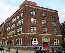 The site for the school at 1086 St. Nicholas Avenue at West 164th Street was secured around 1904.[2] A four-story brick parish school was built by the Rt. Rev. P. J. Hayes in 1924-25[4] to designs by architect Robert J. Reiley for $250,000.[1] At the same time,[5] at 511 West 164th Street, a four-story brick convent was built to designs by the same architect for $75,000.[1] Today, the convent is the location of the Centro Altagracia de Fe y Justicia, a Roman Catholic agency dedicated to faith and social justice.[6]
