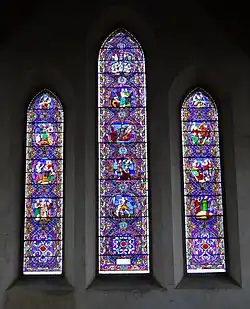 The window on the west wall was made in about 1850 by Ward and Hughes and had been originally installed in St Peter's Church, Islington.[12] Rescued in 1987 by the London Stained-Glass Repository of the Worshipful Company of Glaziers and Painters of Glass, it was dismantled and re-leaded for installation here in 1992.[8]