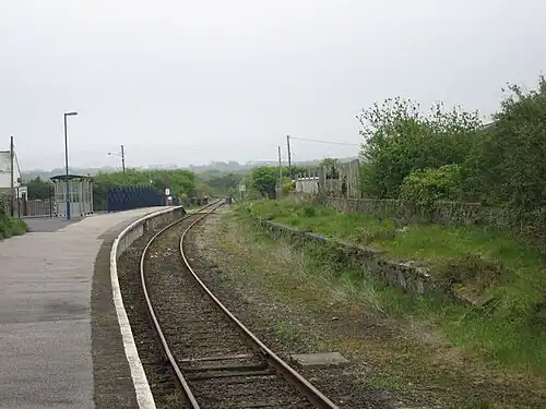 St Columb Road railway station (Cornish: Fordh Sen Kolom) serves the village of St Columb Road in Cornwall, England. The station is situated on the Atlantic Coast Line, 296 miles 11 chains (296.14 miles, 476.59 km) measured from the zero point at London Paddington (via Box and Plymouth Millbay).[1] All services are operated by Great Western Railway, which also manages the station.
