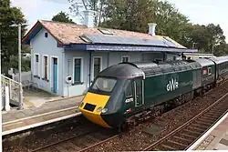 St Germans railway station (Cornish: Lannaled) serves the village of St Germans in Cornwall, England. The station is managed by Great Western Railway and is situated on the Cornish Main Line 10 miles 33 chains (16.8 km) from the line's northern terminus of Plymouth[1] and 256 miles 28 chains (412.6 km) from London Paddington via Box and Plymouth Millbay.[2] To the east of the station, the thirteen arch stone viaduct of 1908 (which replaced the original timber one built in 1859) takes the railway over the River Tiddy.[3]