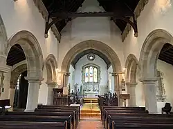 Following demolition, little of the old Norman church was left, apart from the graveyard and a Mortuary Chapel built in 1897.[1] Some evidence of the old church remains; the bases of three Norman pillars are still visible.[1]