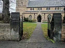 The wall and gate piers to the churchyard are also Grade II listed.[2]
