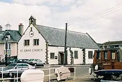 St John's was built as a chapel of ease to the parish church of St Mary's, Bridport.[3] Prior to its construction, Church of England services had been held in a cottage converted in 1862 into a mission room dedicated to St Andrew.[2][4] Fundraising began in 1923 to raise £3,000 for a new church to replace the existing mission chapel, which was considered too small, particularly during the summer seasons when West Bay received a large influx of visitors.[5]