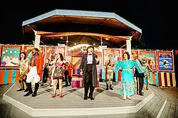Three Artistic Directors have followed. Ian Farthing, who had acted with the Festival,[10] was appointed in 2005 and held the position until 2014. Farthing increased the number of mainstage productions from one to two, added a Sunday series of special events and an educational program.[6] Highlights of those years included a 2011 production of Twelfth Night, which won the Prix Rideau Award for Outstanding Production in the greater Ottawa-Gatineau region,[11] and adaptations by Canadian playwrights of some less frequently produced works by Shakespeare such as The Merry Wives of Windsor (adapted by playwright John Lazarus for Prescott's 200th anniversary year as Trouble on Dibble Street),[12][13] and Love's Labour's Lost (adapted by playwright Lucia Frangione to a War of 1812 setting as A Maid for a Musket).[14] In 2014, SLSF won the distinction of being the only Canadian Theatre to present Shakespeare's Globe Theatre's international touring production of Hamlet, for two sold-out performances.[15][16] Rona Waddington followed Farthing, programming the next three years of the Festival. Innovations introduced by Waddington included recruiting a team of local volunteers to play crowds and soldiers in productions of Julius Caesar and Antony and Cleopatra,[17][18] facilitating work on a scale that had not yet been seen at the Festival, and a series of “Community Productions”, in which post-season productions were directed by Waddington, as fundraisers for the Festival, that exclusively featured local amateur actors[19] After the 2017 season, Waddington departed and Richard Sheridan Willis, who had appeared in the festival as an actor for three seasons was named as the new Artistic Director.[20] The 2018 season is Willis's first programmed as Artistic Director.