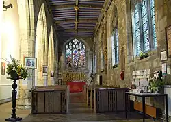 The church is noted as having a large medieval window with scenes from the life of St Martin. Luckily this was removed for safe keeping in 1940, and was not destroyed in the bombing of April 1942.[5]