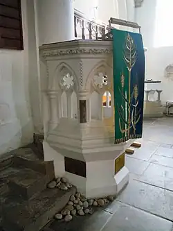 From the present pulpit the Reverend Charles Lutwidge Dodgson ("Lewis Carroll") used to occasionally preach when staying with his family in their home, The Chestnuts nearby. It was also at St Mary's that his funeral was held.[1][3][4]