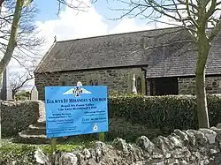 St Mihangel's Church is set within a gated and walled churchyard at the side of the road in the village of Llanfihangel yn Nhowyn in Anglesey, north Wales. It is dedicated to St Michael (Welsh: Mihangel).[2] The village, which is about 5 miles (8.0 km) from the port town of Holyhead in the north-west of the island, takes its name from the church; the Welsh word llan originally meant "enclosure" and then "church", and "‑fihangel" is a modified form of the saint's name.[3][4]