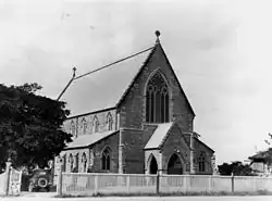 Anglican services were held in Rockhampton from the late 1850s by lay ministers. In 1859 a small timber church and school building was constructed, however this was destroyed in a storm in 1860. The pioneer rector, the Reverend Thomas Jones, arrived in Rockhampton in about 1860 and held services at Grant's Timber Yard Hall and at the local Court House. By 1862 he had raised sufficient funds to build a timber church on the site later occupied by the parish hall. This building, designed by Thomas Dixon Chater, was built on a dedicated church reserve adjoining the National School. By 1872 about £3000 had been collected for the construction of a third Rockhampton church.[1]