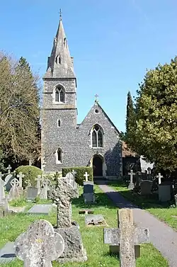 St Peter's Church is a Catholic parish church in Marlow, Buckinghamshire. It started from a mission church founded in 1844 and was completed in 1846. It was designed by Augustus Pugin in the Gothic Revival style and founded by Charles Scott-Murray. It was the first new Catholic church built in Buckinghamshire since the Reformation, one of the last designed by Pugin and contains the relic of St James the Apostle's left hand.[3] It is located between St Peter Street and Mill Road near the centre of Marlow. In 1970, an extension was built connected to the church on its northeast side. It was designed by Francis Pollen. It is a Grade II listed building.[4][5]