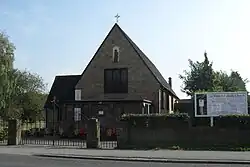 About 3 miles (4.8 km) from Hailsham was the village of Upper Dicker, a stronghold of Protestant Nonconformism (the 400-capacity Zoar Strict Baptist Chapel had opened in 1838).[5] One resident was a Catholic convert, though, and she wrote to Bishop of Southwark Peter Amigo in 1915 asking for part of her house (Elm Cottage)[6] to be used as a public oratory for herself and local Catholics.[7] Permission was granted, and Fr Paul Lynch of Our Lady of Ransom Church said Mass for her and three other people on 15 July 1915. This became a regular arrangement, and within months nurses from Hellingly Hospital were also attending.[6][8] The small chapel was furnished with spare benches from St Peter and St Paul's Anglican church at Hellingly.[8]