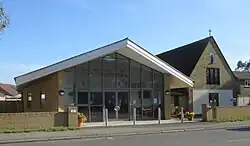 The church held up to 130 people,[30] making it the smallest of the eight designed by Henry Bingham Towner in the diocese.[31] In the early 21st century it was decided to build another new church on the South Road site and convert Bingham Towner's building into a church hall. Innerdale Hudson Architects of Eastbourne (scheme architect Simon Franks)[32] were commissioned to design the building,[33] and the building contractors were P.D. Harris (Henfield) Ltd of Henfield.[34] The Diocese of Arundel and Brighton approved the scheme in late 2013 and sought planning permission from Wealden District Council[32] in December of that year. The application was approved in May 2014.[35]
