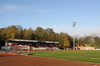 Stade Émile Mayrisch is a football and athletics stadium, in Esch-sur-Alzette, in south-western Luxembourg. The stadium has a capacity of 1,632. Original capacity before stadium became all-seater was 3,826. It is named after Luxembourgian industrialist and steel industry trail-blazer Émile Mayrisch. It is currently the home stadium of the football club CS Fola Esch and the athletics club CA Fola Esch.