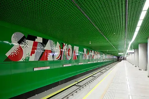 Stadion Narodowy is an underground station on the central part of Line M2 of the Warsaw Metro. It is named after the Kazimierz Górski National Stadium (Stadion Narodowy im. Kazimierza Górskiego), which is located in the area.