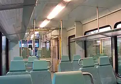 The G.T.W. (pronounced Ghe-Teh-Ve) means Gelenktriebwagen, which translates to "articular trainset", ie having two or more parts connected to each other, while 2/6 means that of the 6 axles, 2 are drivable. As for the "Railbus", it is used informally to describe light trainsets.[14] The arrangement of the trainsets is 2′Bo2′ and they are made of aluminum and steel alloys, and in the middle there is a drive vehicle, which is called "Power Module", where the 550 kW power diesel engine named MTU 12V 183, as well as the other mechanisms are located.[15]