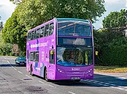 Stagecoach in Hants & Surrey[8] operates from depots in Aldershot and in Peasmarsh, just outside of Guildford. Since 2022 it has also operated from the former Arriva depot in Guildford.[9] It is made up of Alder Valley's remaining operations, taken over by Stagecoach on 26 October 1992.[10] The company operates a number of routes across Hampshire and Surrey, serving Aldershot, Camberley, Farnborough, Godalming, and Guildford.