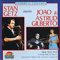 Stan Getz meets João & Astrud Gilberto: New York 1964 is a live recording of bossa nova in the making. In 1990, the Giants of Jazz label released a live recording of a 1964 New York City performance featuring Stan Getz, João Gilberto and Astrud Gilberto, the latter's then-wife. The album, entitled Stan Getz meets João & Astrud Gilberto is actually misleading: the trio had met previously in 1963 for the recording of the wildly successful album Getz/Gilberto, which was released in 1964 and set off the bossa nova frenzy in the U.S. As a result of that album’s success, the Brazilian Gilbertos and the American Getz played a number of shows in the U.S., such as the one recorded here. Released as part of the “Immortal Concerts” series, this recording exhibits the chemistry the three obviously shared and captures bossa nova in its infancy, as it was still being created and defined.